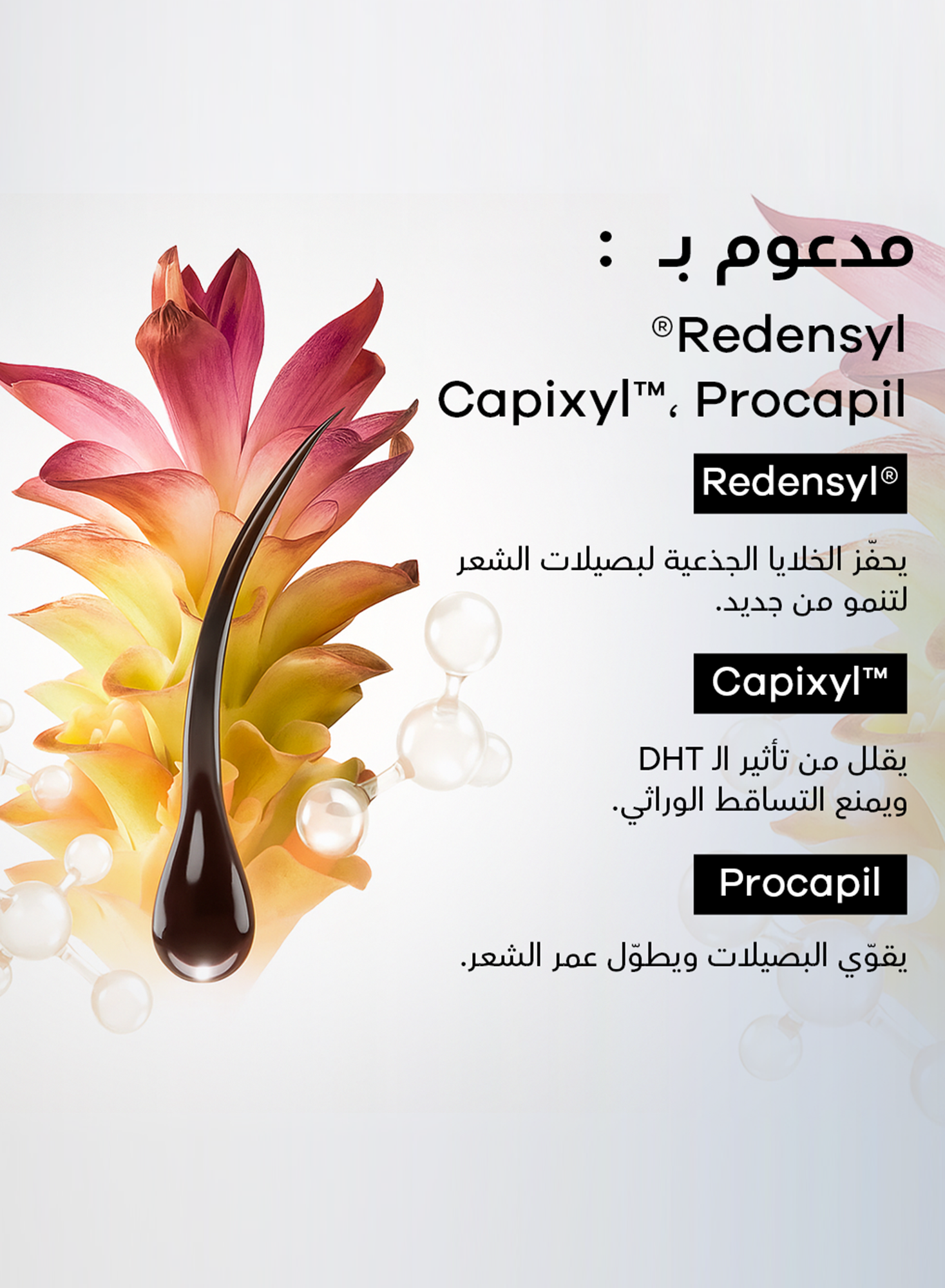 A specialized men’s hair serum powered by Redensyl®, Capixyl™, and Procapil™, combined with Hyaluronic Acid and Vitamins B3 & B5. It reduces hair loss, stimulates follicle activity, and nourishes the scalp for improved root health. Enhanced with ApiScalp™ technology, it strengthens hair structure, increases thickness, and boosts overall vitality. Designed for men seeking fuller, thicker, and healthier hair.