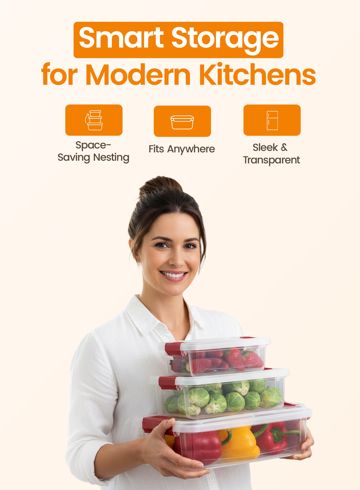 Organizers Set of 3 Lockable Plastic Storage Container Set, Nested Plastic Food Storage Container | Stackable (Gray) | BPA Free